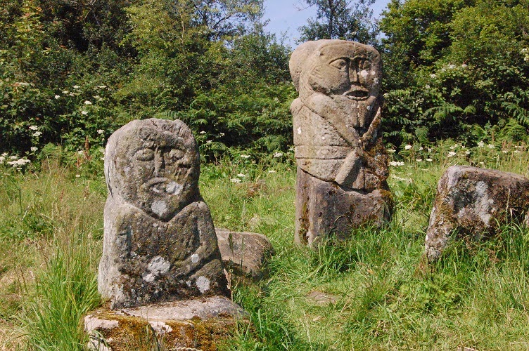 En el cementerio de Caldragh nos encontramos con estas dos figuras antropomorfas talladas en piedra. El cementerio data entre el 400-800 a.C así como la figura de Jano que también data de ese periodo.