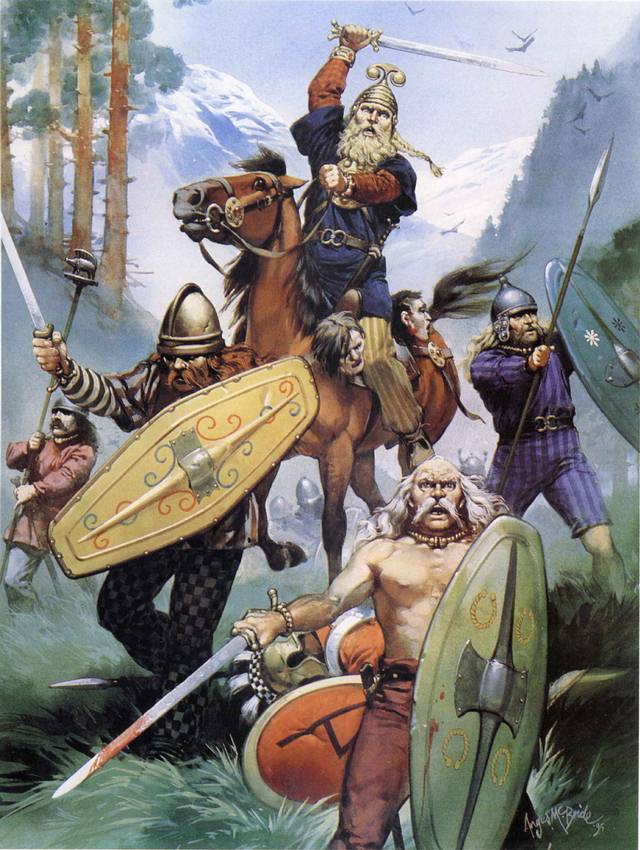 Basandonos en las fuentes antiguas, encontramos a Tito Livio dice “Los jinetes galos, llevando las cabezas colgadas delante del pecho de sus caballos y clavadas en lanzas, entonaban cánticos según su costumbre”
