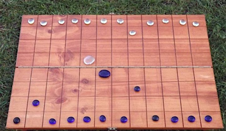 También destaca un juego de mesa, con piezas de vidrio azul y blanco, trece a cada lado del tablero, el cual estaba en malas condiciones aunque gracias a las bisagras y las esquinas se pudo reconstruir