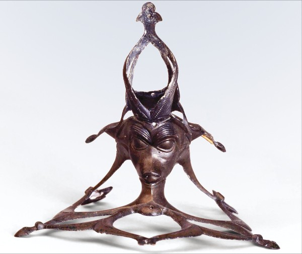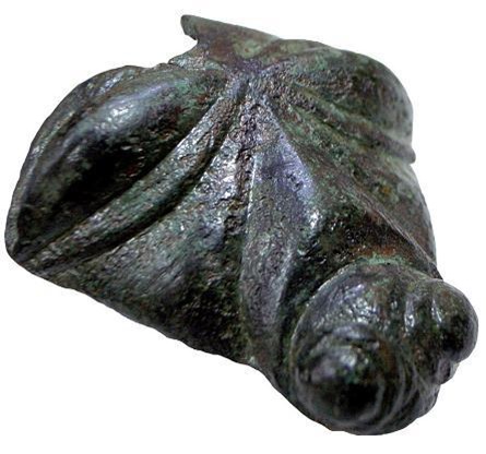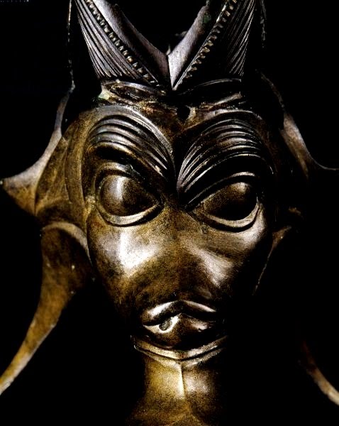 Cabeza de bronce que adornaba una jarra de madera. Datada en el s.III a.C y hallada en Brno-Malomerice (Rep.Checa).