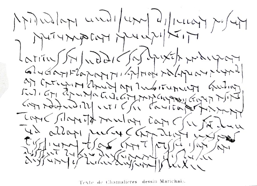 La defixio de Chamalieres data entre el 50 a.C al 50 d,C, y fue encontrada en 1971. Es menos extensa que la de Larzac contando con 47 palabras, mientras que la de Larzac cuenta con 160. En ella se invoca al dios celta Maponos (dios de la juventud), para devolver la maldición, a una serie de personas por haber hecho un falso juramento en contra del beneficiario de la defixio.