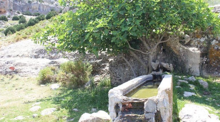 Ascenderemos hasta llegar a la Fuente de la Meca, lugar donde nos refrescaremos. La fuente ibera es de un solo caño y existe un abrevadero de época medieval debajo de una higuera.