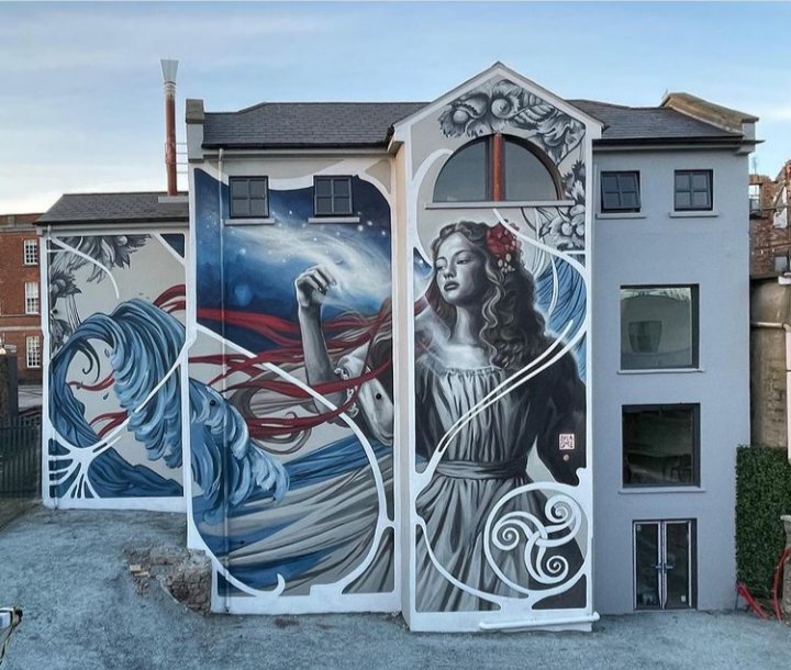Y el mural de «Bóinn» lo ha pintado Lula. Bóinn (o Boann) es la diosa del río Boyne y junto con Dagda (que fue su amante) tuvieron a su hijo Aengus.