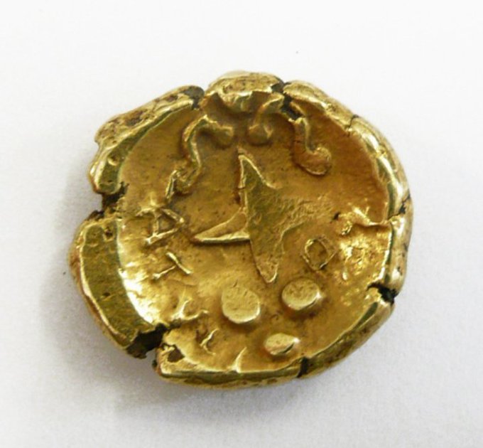 Monedas celtas halladas en Anvaing (Hainaut), Nukerke (Flandes Oriental) y Strijer (Brabante). Museo Arqueológico Nacional de Bruselas.