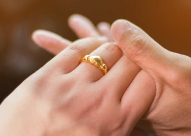 Si es en la mano izquierda y con el corazón hacía fuera: está comprometid@, sin embargo, si el corazón mira hacia dentro, está casad@ (el anillo se giraba en la boda como simbolo de compromiso).