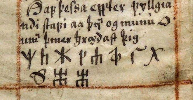 – Para causar miedo a un enemigo: Si quieres que tu enemigo te tema cuando te vea, entonces graba estas runas en una rama de roble y llevalo encima en medio de tu pecho- y asegurate de verle antes de que el te vea a ti.