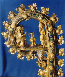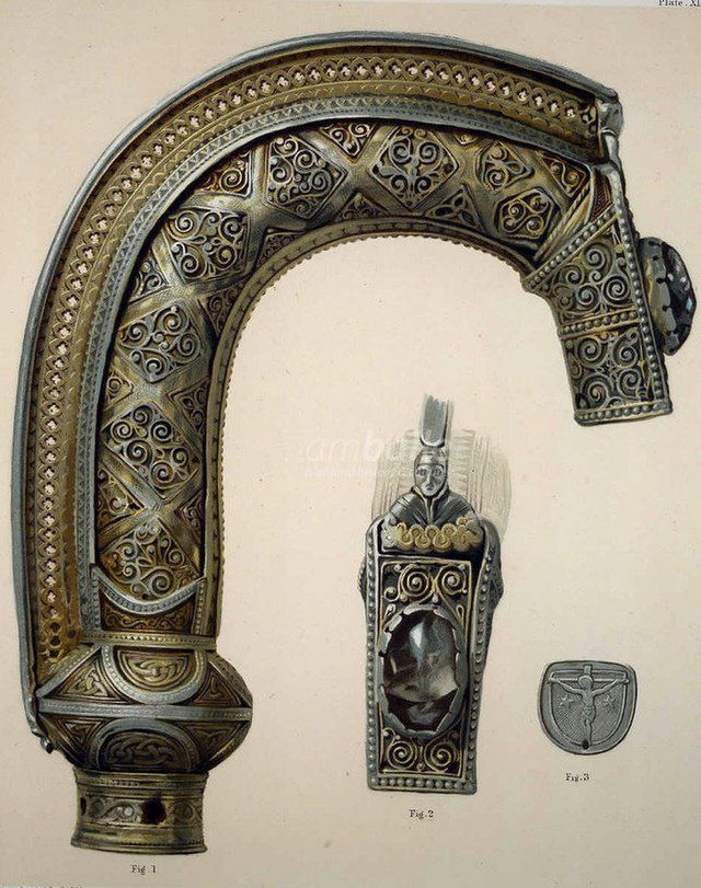 El báculo de San Fillan. Data del s. VII y se asocia con el monje irlandés del mismo nombre, quien vivió en Glendochart, Perthshire (Escocia) El báculo se utilizó para dar bendiciones y como estandarte. Así se constata que fue llevado a la batalla de Bannockburn en 1314