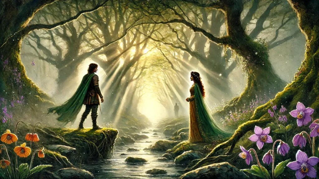 Había un príncipe de las hadas llamado Midir, “el Orgulloso”, que vivía en una colina cercana a la actual Dublín y estaba casado con Fuanmach. Pero la mirada del hombre se posó un día en una hermosa doncella llamada Etain, de quien se enamoró perdidamente y a la que hizo también su esposa.